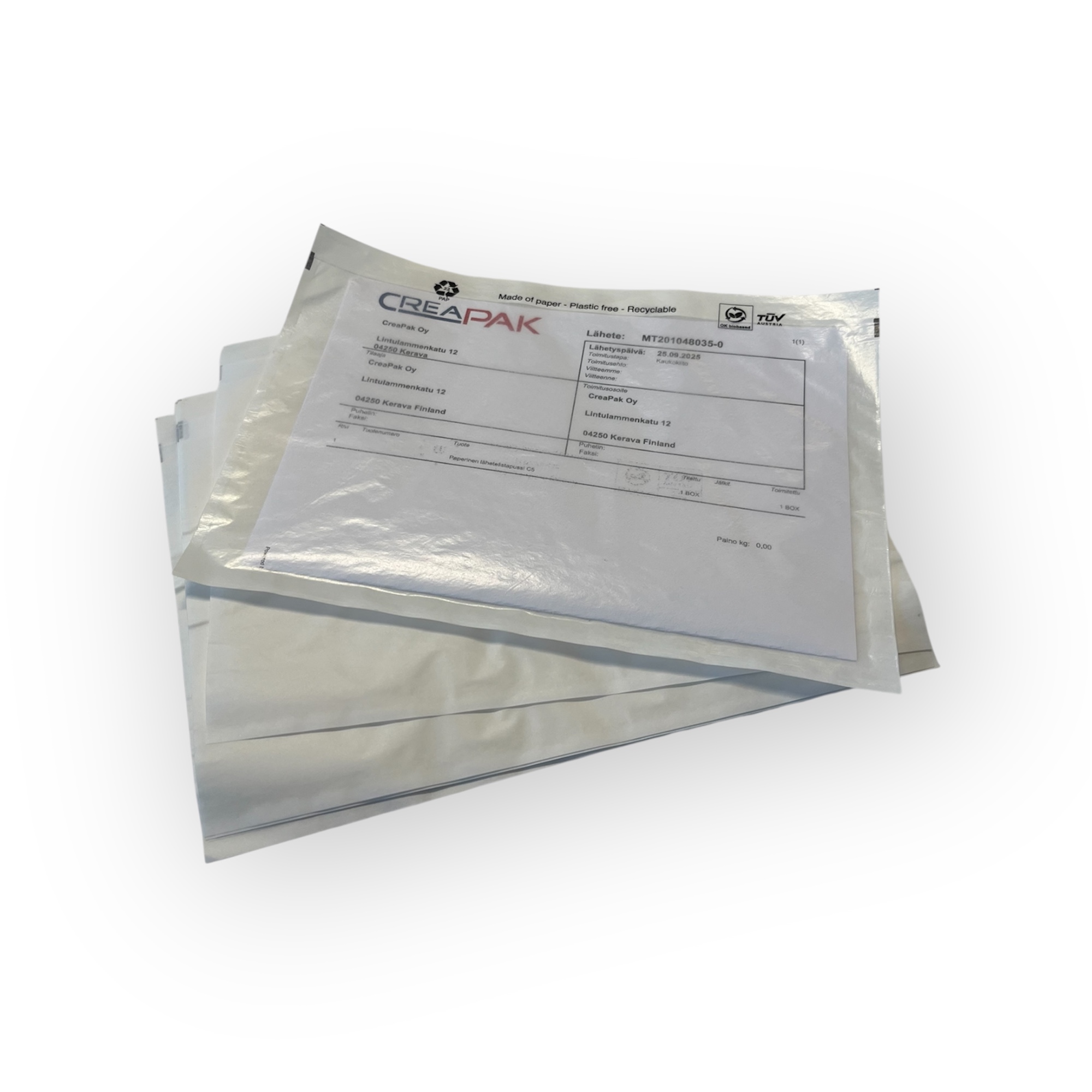100% paperinen ja kierrätettävä tuote lähetyslistojen ja muiden asiakirjojen suojaukseen!